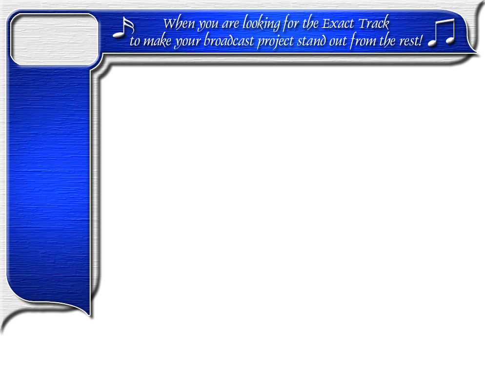 Welcome to ExactTracks.com. A completely unique production music site offering musical excellence from experienced award winning composers and musicians of the highest quality and using state of the art recording technology. What makes Exact Tracks a unique production music source is the fact that all of the compositions you will find on our site were composed with all of the qualities audio and video editors look for in a track. Qualities like definite intros and endings and the body of the compositions are created with multiple time formats and looping possibilities keeping in mind from an editor's point of view how to create concise and intentional sounding applications. We offer high quality tracks in multiple genres, ranging from techno to celtic, rock to reggae, orchestral to jazz and jazz fusion, classical, blues, R&B, country, news and broadcast themes and even the abstract.
